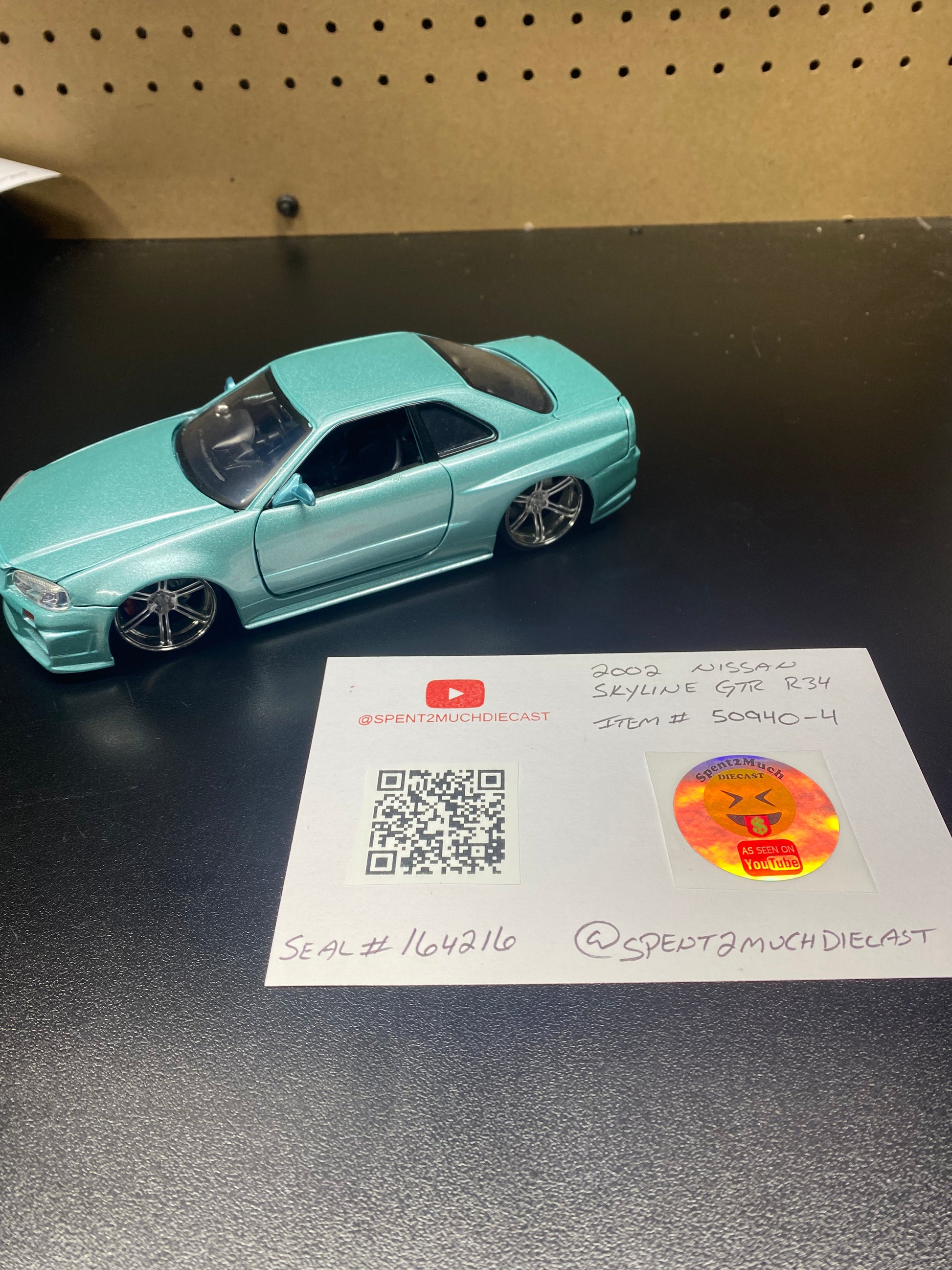 2002 Nissan Skyline GTR R34 (TEAL) Jada Toys - Fast & Furious (LOOSE) PRELUDE